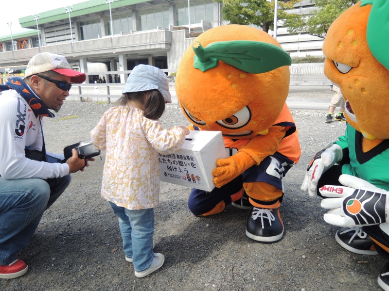遊具に夢中になっていた娘が「あ!オーレくん!」と気づいた瞬間、見たことが無いスピードでオーレくんに向かって猛ダッシュw東北大震災の募金をしっかりやって記念写真を撮らせてもらいました。それにしても別にテレビでアニメをやってるわけでもなく、子供向けの雑誌に登場しているわけでもないのに、ここまで3歳の娘を惹きつけるのはいったい何なんでしょう?w